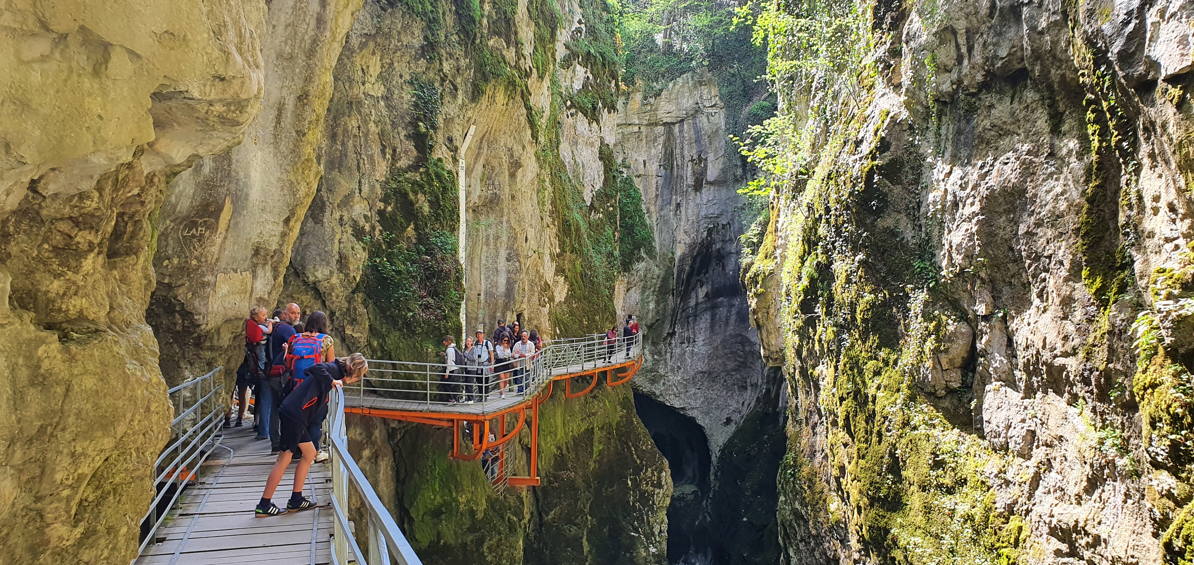 Très agréable et impressionnante balade sur passerelle qui serpente à flanc de paroi dans la gorge encaissée du fier, environ 25 mètres au dessus du torrent ! Attention à éviter l'affluence sous peine d'embouteillage.