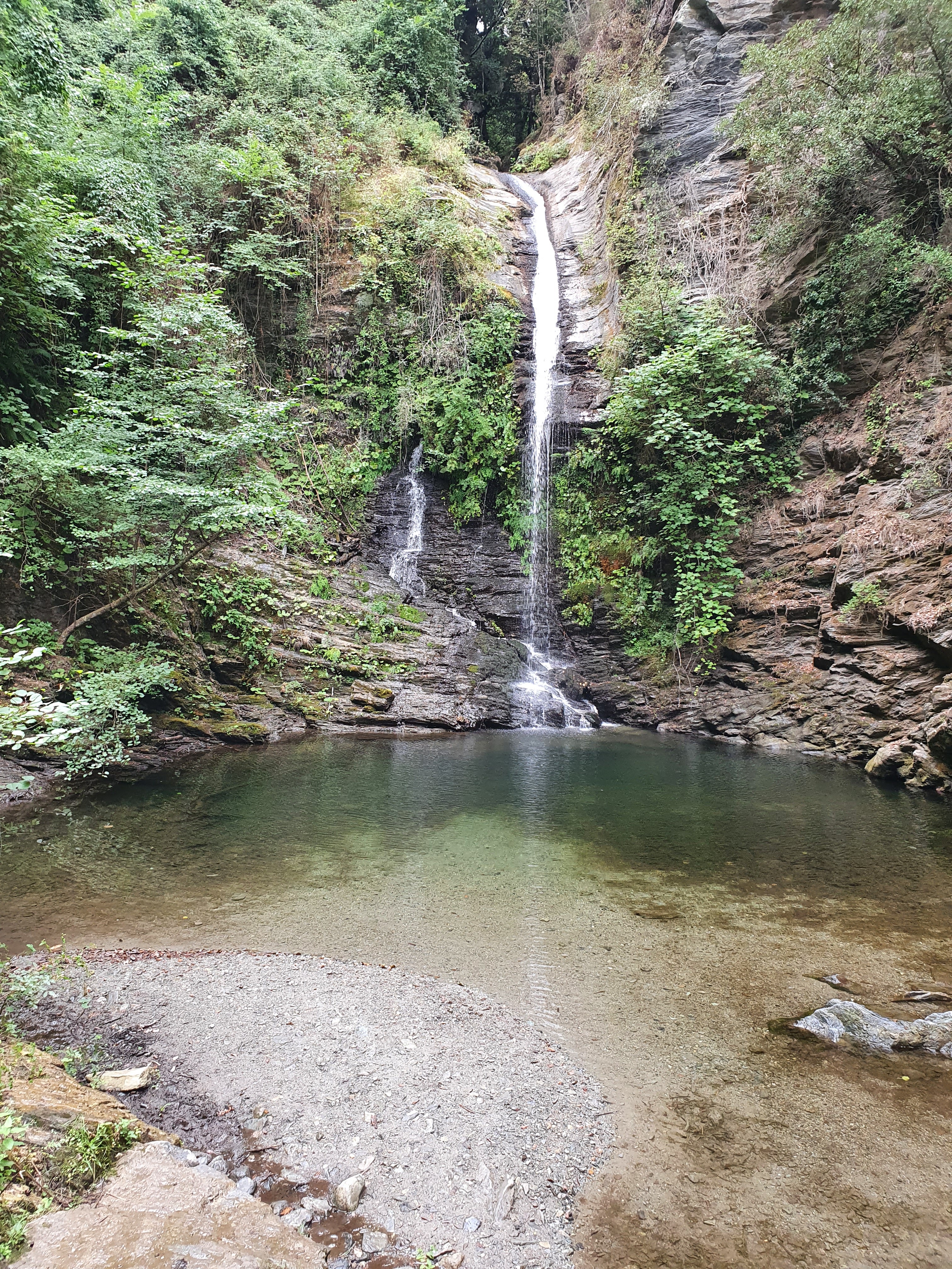 Magnifique cascade, accessible facilement avec des enfants à partir de Carchetu par un sentier qui descend doucement, avant de terminer par des escaliers. Table de pique-nique à l'ombre surplombant la cascade. En bas, vasque de fin gravier pas trop profonde au début, idéale pour les plus petits.